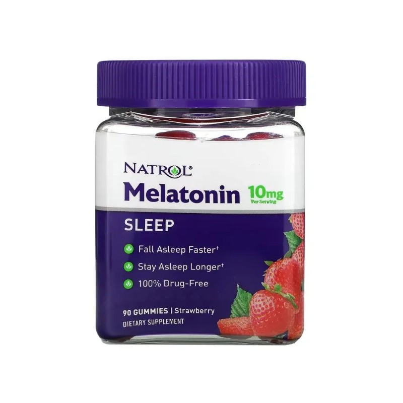 Natrol, Melatonina, Fresa, 10 Mg, 90 Gomitas, Melatonina Es Una Ayuda Para Dormir Nocturna Que Ayuda Con El Insomnio Ocasional. Para Amanecer Fresco