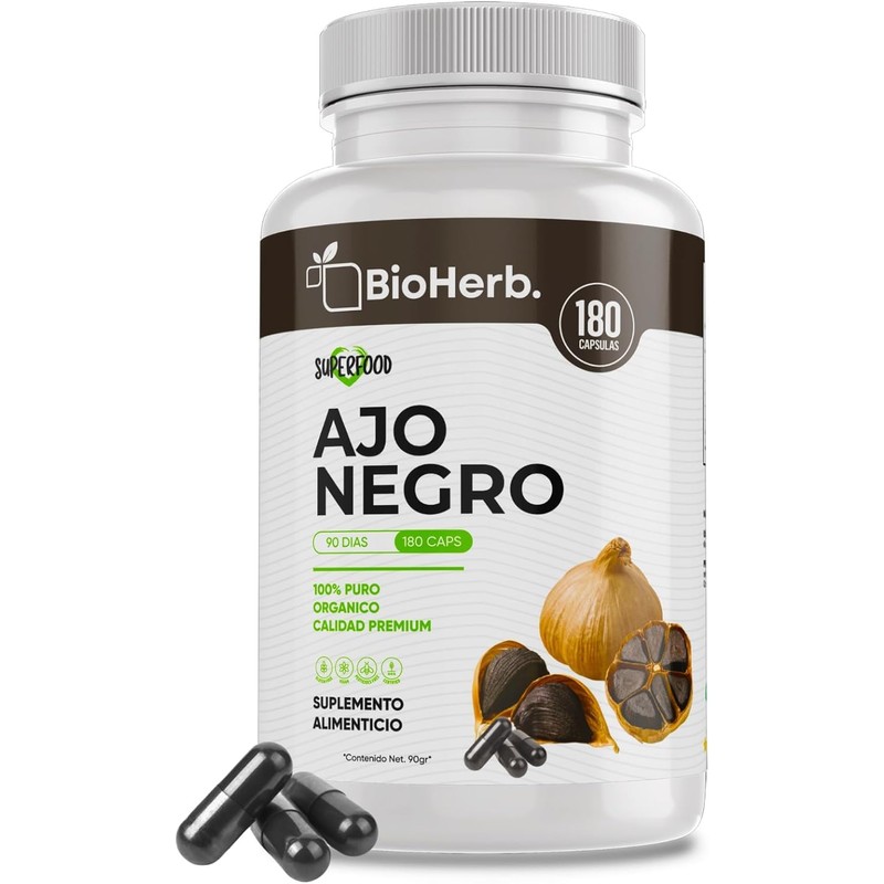 🧄 Fortalece tu salud con BioHerb Ajo Negro 100% Puro, un suplemento natural con 180 cápsulas de 500 mg que proporciona un suministro completo para 90 días.