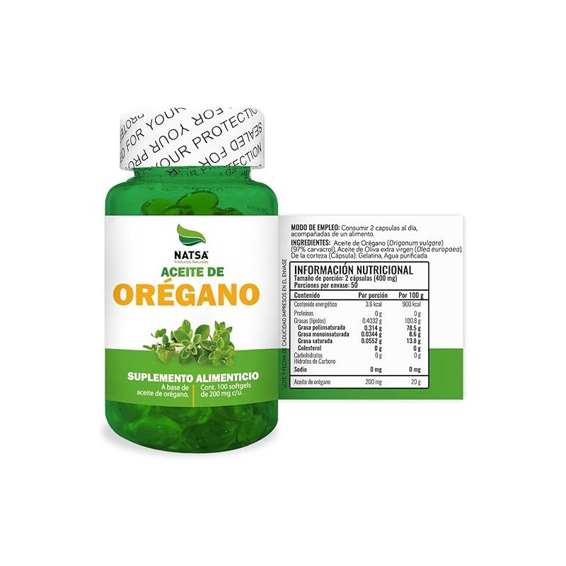 NATSA Aceite de Orégano 100 cápsulas, calidad Premium