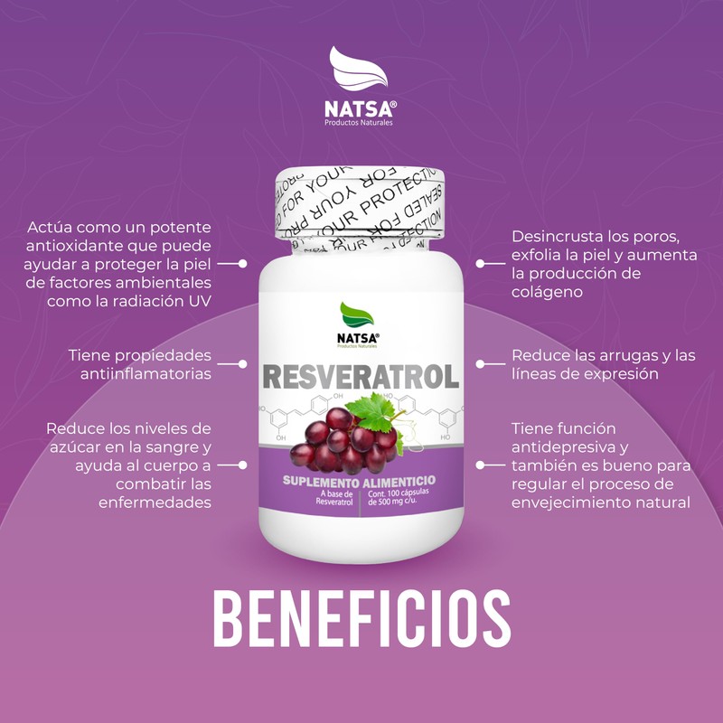 NATSA Resveratrol 100 cápsulas, calidad Premium