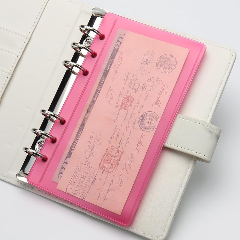 - 【FULL OF MAGIC】-- NEW colorful side open a6 binder pocket, zipless pink cash envelopes, 6-holes design suitable for 6 ring refillable A6 binder notebooks and planners, simple and lightweight, easy to carry, great organizer for home, office, school, meeting, travel;