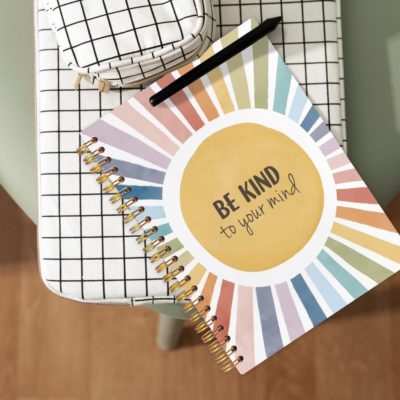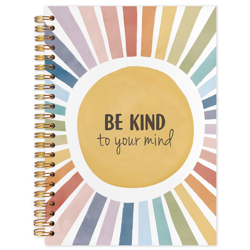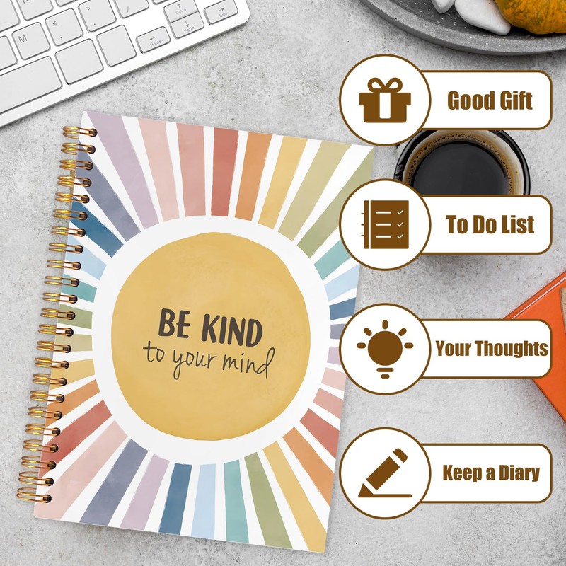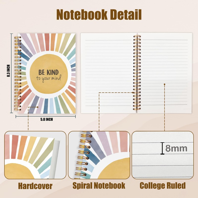 NATSUNO Boho Sunshine Mental Health Spiral Notebook Journal 5.5x8.3in, Be Kind to Your Mind Inspirational Therapy Journal Notebooks for Note Taking, Positive Affirmations Gifts Hardcover Notebook