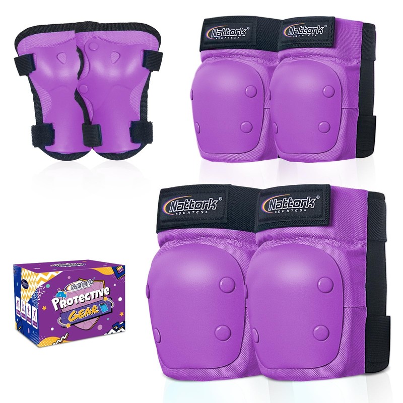 Nattork Knee Pads, Elbow Pads & Wrist Guards for Adult, 6 in 1 Protective Gear Set for Skateboard, Roller Skate, Inline Skates, Cycling and Scooter- Multi Sport Pads Set for Boys, Girls-Purple(Small)