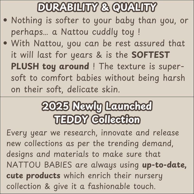 Nattou Active cuddly ball made of polyester, bear, plush ball with rattle, for newborns and premature babies, diameter 12 cm, teddy, white/light brown