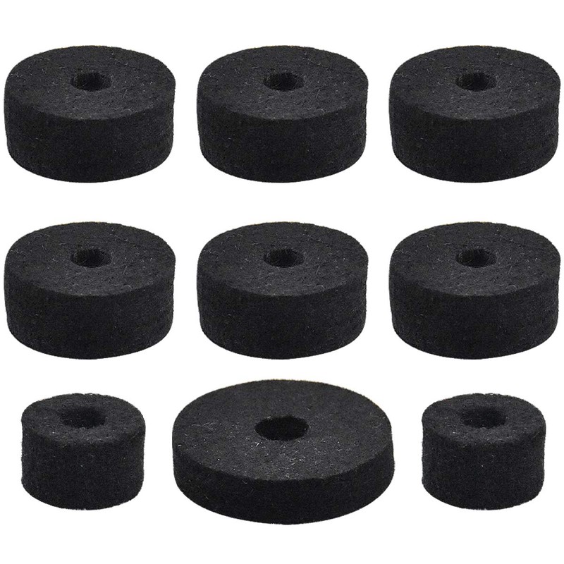 - Cymbal stand accessory set: felt gliders, sleeves and nuts in standard size, suitable for most drum kits, including: 3 cymbal sleeves with base (8 - 10 mm), 6 cymbal felts (8 - 10 mm), 2 hi-hat coupling felt (6 - 8 mm), 1 hi-hat cup felt (6 - 8 mm), 3 8. mm), 3 washers (8 mm).