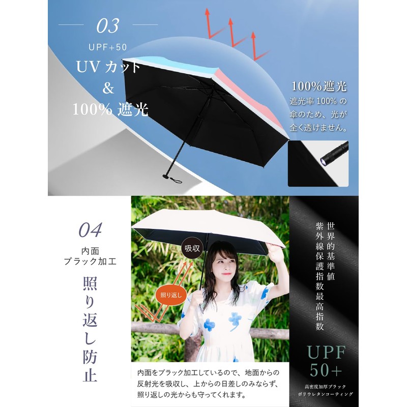 Natucy Women's Ultra Lightweight, Only 4.5 oz (128 g), Folding Umbrella, Compact, Sun or Rain, UV Protection, 100% UV Protection, Completely Light Blocking, Heat Shielding, light pink/white