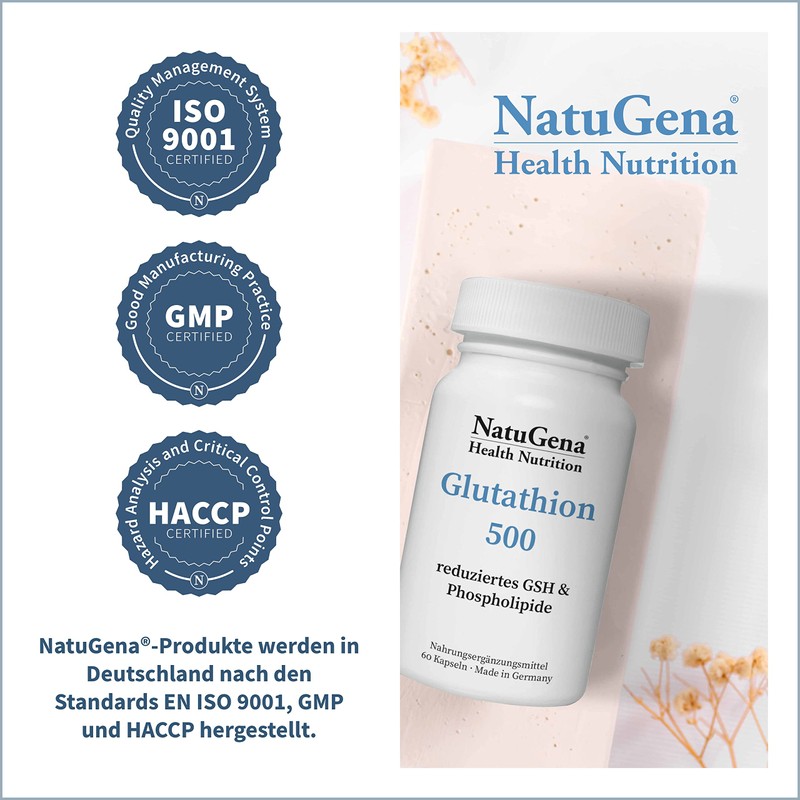 NatuGena Glutathione 500, made from 100% reduced glutathione, 60 capsules
