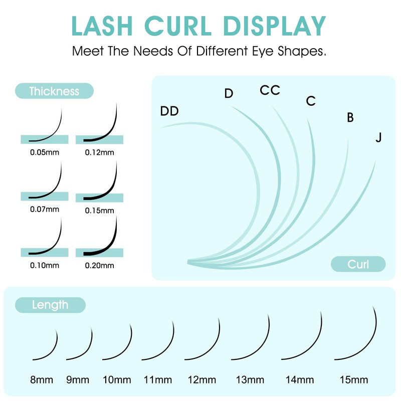 - ❈[Multiple choice] Unchanged curvature: J/B/C/CC/D/DD, available thickness: 0.05/0.07/0.10/0.12/0.15/0.20. Multiple lengths in one tray are convenient for you, 8-15 mm mix, 16 rows/casing; 15-20 mm mix, 12 rows/casing; 20-25 mm mix, 12 rows/case.