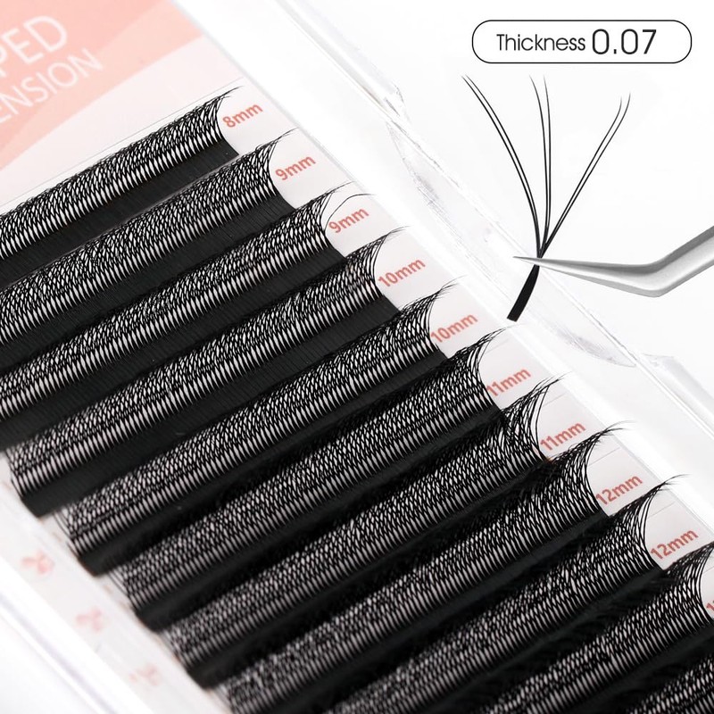 NATUHANA WW Clover Eyelash Extension 0.07 mm D Curls 9-15 Mixed Tray Double 3D Eyelash Accessories Prefabricated Fans Eyelash Extension (D3D Black 0.07D 9-15MIX)