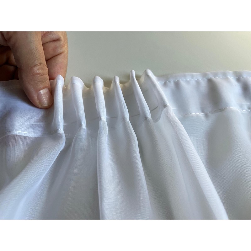 - Folding tape comes 1:1 / a wrinkle-free curtain. If desired, you can create 1:2.5 or 1:3 gathered pleats. For example, if your window width is 1.00 m, your order must be 2.50 m or 3.00 m. Perform the calculation in this way. The image is draped more pleasant, graceful