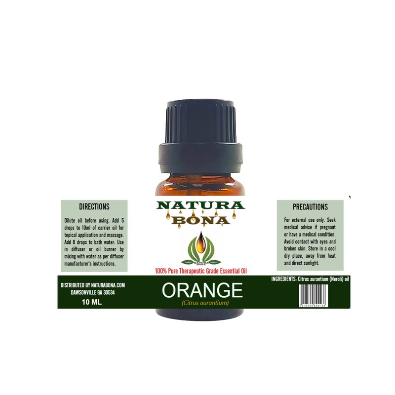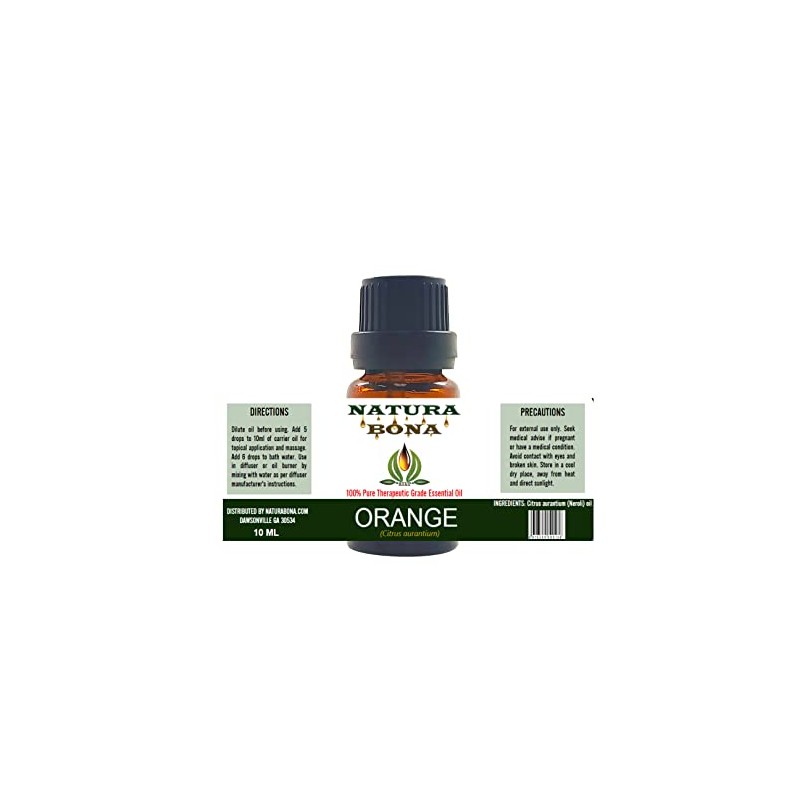 Natura Bona Therapeutic Grade Aromatherapy Essential Oil for Diffusers, 10ml Amber Glass Bottle (Orange)