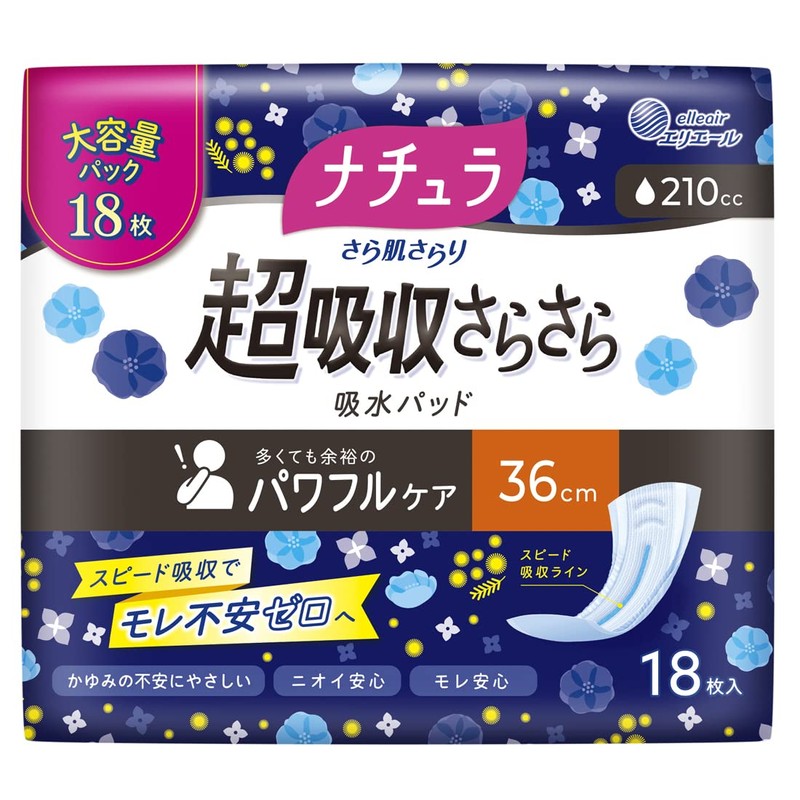 Natura Smooth Skin Super Absorbent and Smooth Absorbent Pad, 7.1 fl oz (210 cc), 14.2 inches (36 cm), 18 Pieces, Large Capacity