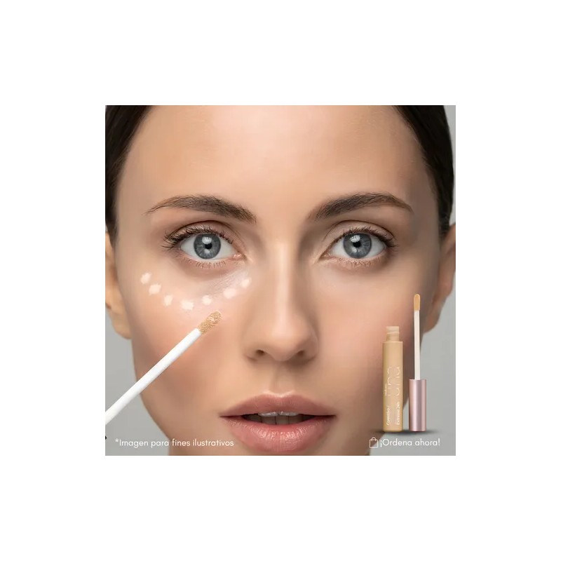 Aplica una pequeña cantidad directamente con el aplicador en las áreas que deseas corregir (como ojeras o manchas) y difumina suavemente con la yema de los dedos o con una brocha para corrector, logrando un acabado profesional. ¡Puedes usarlo antes o después de tu base! 🖌️