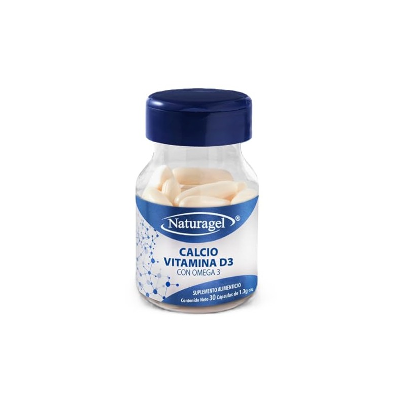 Naturagel Calcio con Vitamina D3 y Omega 3 Suplemento Alimenticio en Cpsulas de 1.3 g Presentacin de 30 Unidades con Frmula Completa y Balanceada