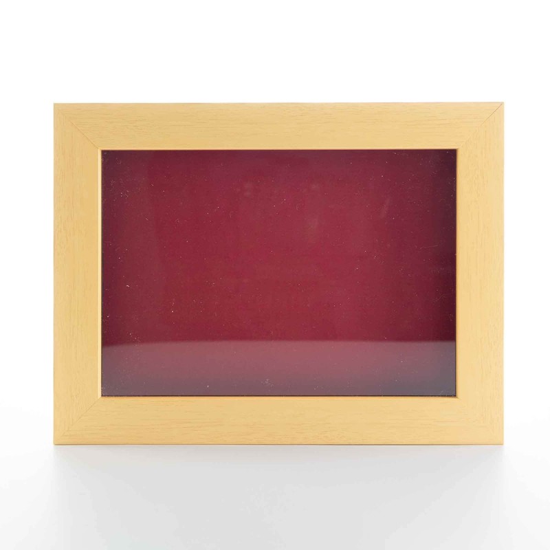 - Natural Wood Shadow Box Frame Interior dimensions of 24x30 inches with 3/4" of usable depth. UV resistant, frame-grade acrylic protective front. Acid-free red backing board and interior walls. Hanging hardware included for vertical or horizontal display.