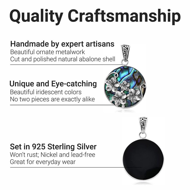 - 925 STERLING SILVER - The abalone pendant features exquisite metalwork handcrafted by experts. Set in 925 sterling silver, these abalone shell pendants won't rust and are nickel and lead-free.