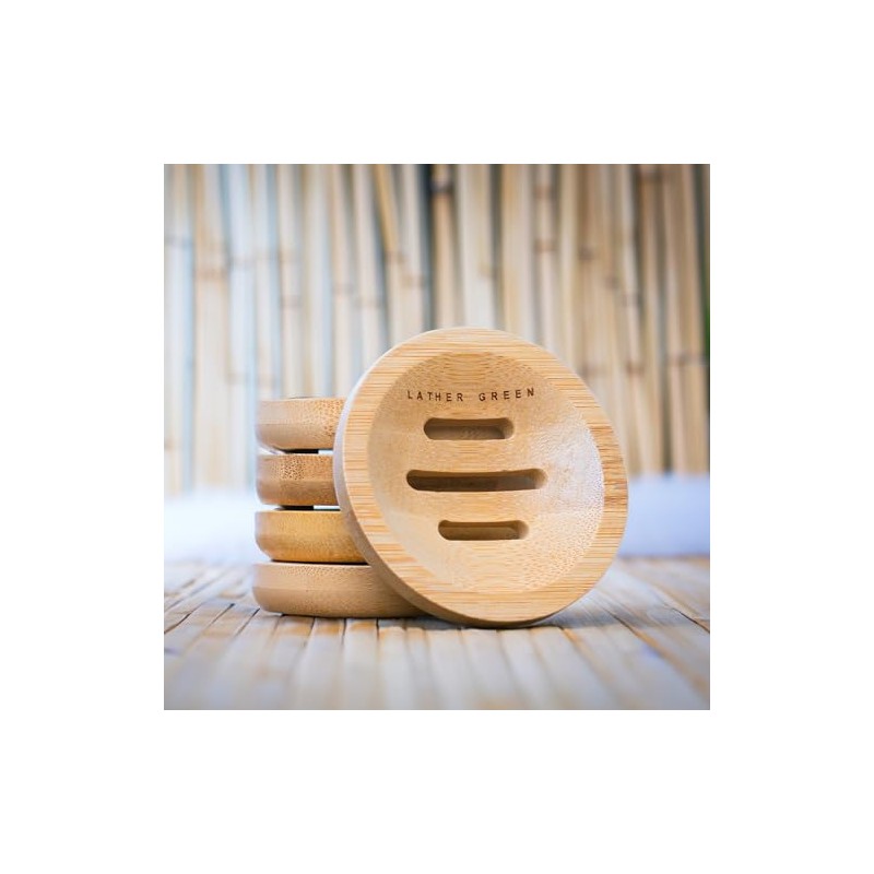 Natural Bamboo Tray for Shower Steamers Soap Bars Shower Bath Lather Green, Eco-Friendly with Drainage, Durable Design