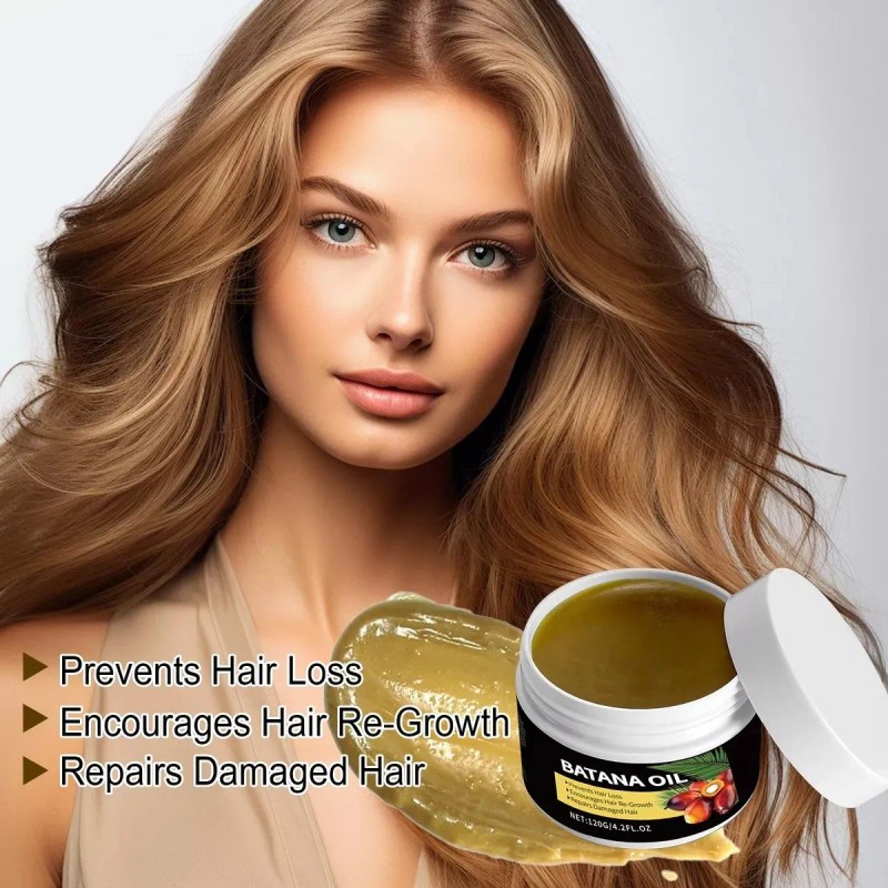 120ml of 100% natural Batana oil for hair repair, growth, and deep hydration. Revives damaged strands, strengthens roots, and restores shine. Ideal for all hair types.