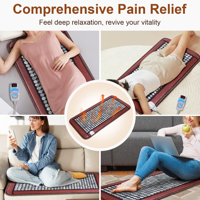• Far Infrared Heating Pad: This healing mat includes 280 pieces of natural jade stones - the Asian tradition of heating jade stones for comfort and health. Every jade stone 1" in diameter.