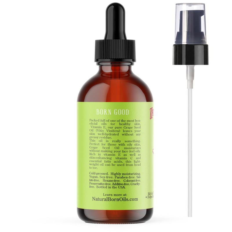 Natural Born Oils Grape Seed Oil. 4oz. 100% Pure and Natural, Cold-pressed, Organic, Moisturizer for Skin and Hair