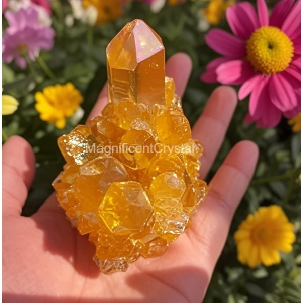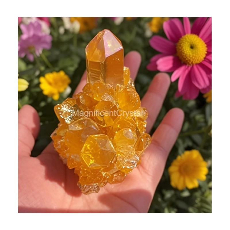 Natural Citrine Cluster Aura Crystal Cluster Mineral Specimen Decor Healing Gift