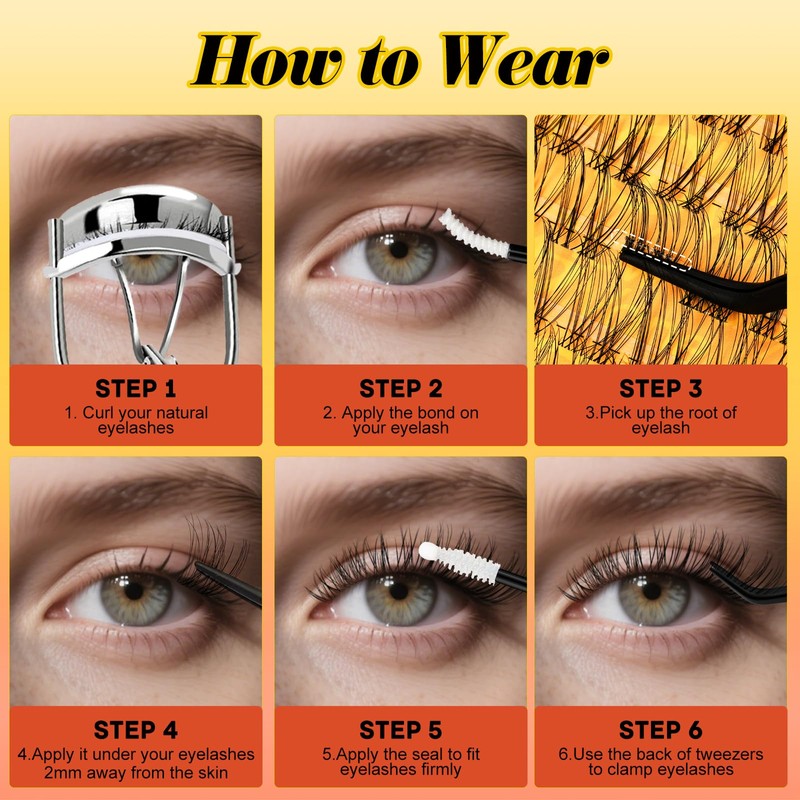 Natural Cluster-Lashes Kit D Curl, Glowvane Eyelashes Individual Kit 8-18mm, Cluster Lashes with Lash Bond and Seal and Tweezers, Reusable Eyelash Clusters Easy to Use and Remove(Natura A)