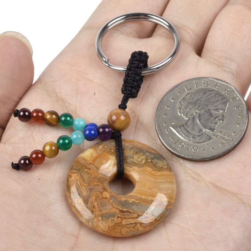 - PRODUCT DETAILS: Keychain Total Length:Approx 73mm(2.8 Inches) ; Keyring Diameter:Approx 25mm(1 Inch);Donut Pendant Size:Approx 30x6mm(1.3x0.2 Inches). Material: Natural Gemstone; Metal:Stainless Steel.