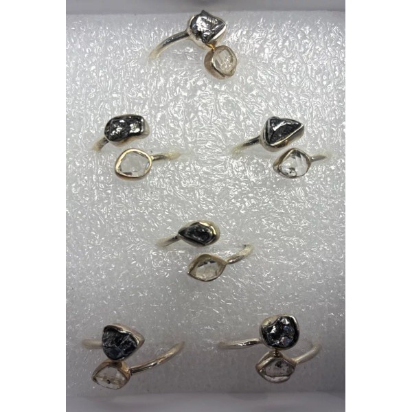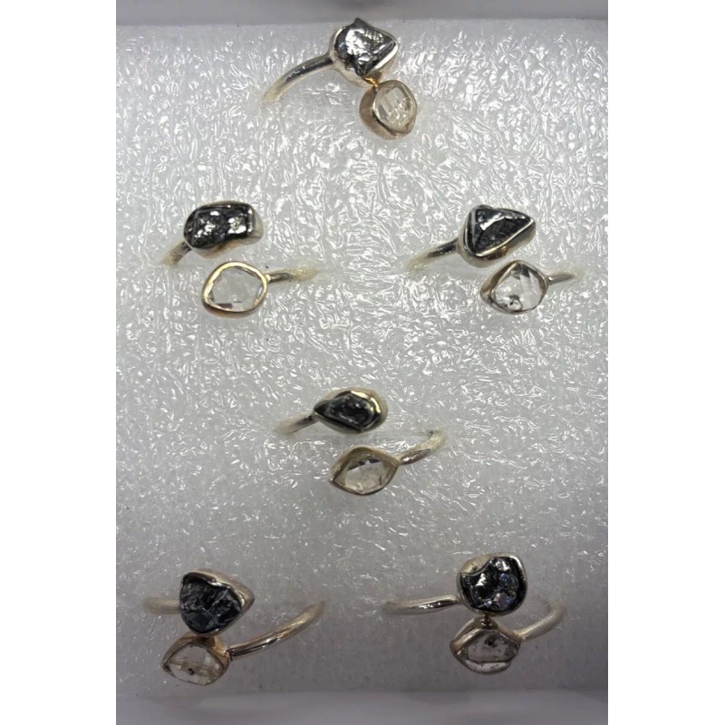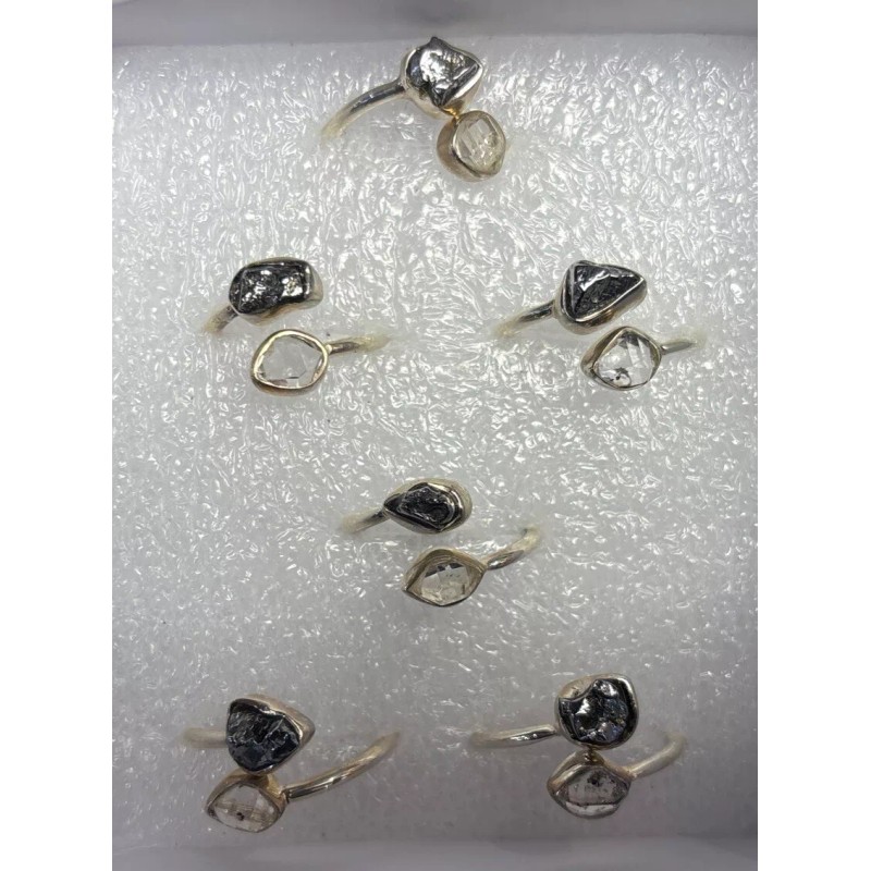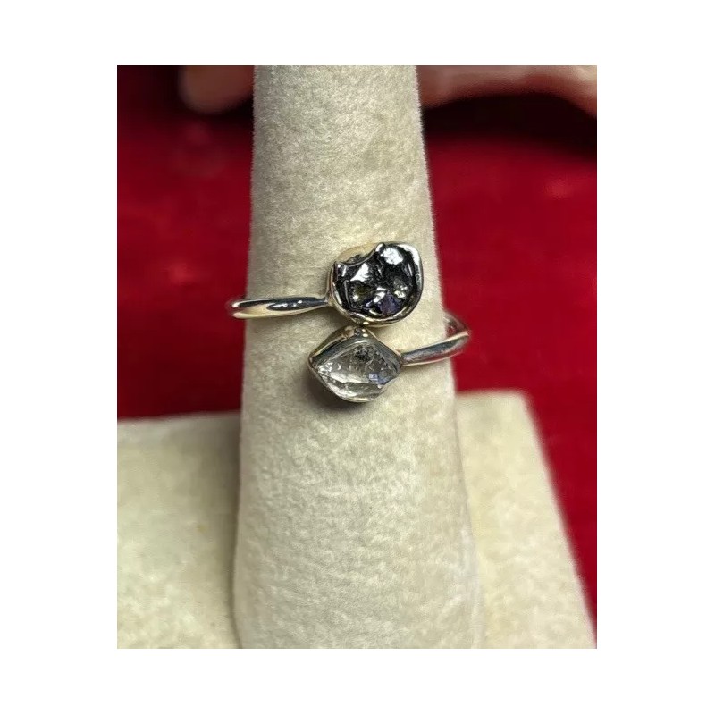 Natural Creations Herkimer Diamond And Meteorite thumb ring sterling silver s...