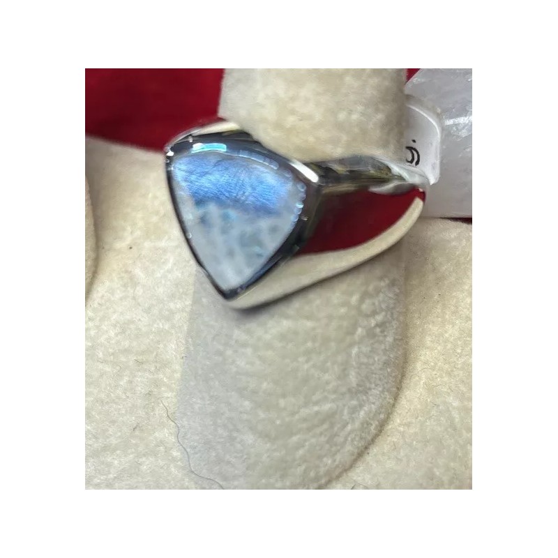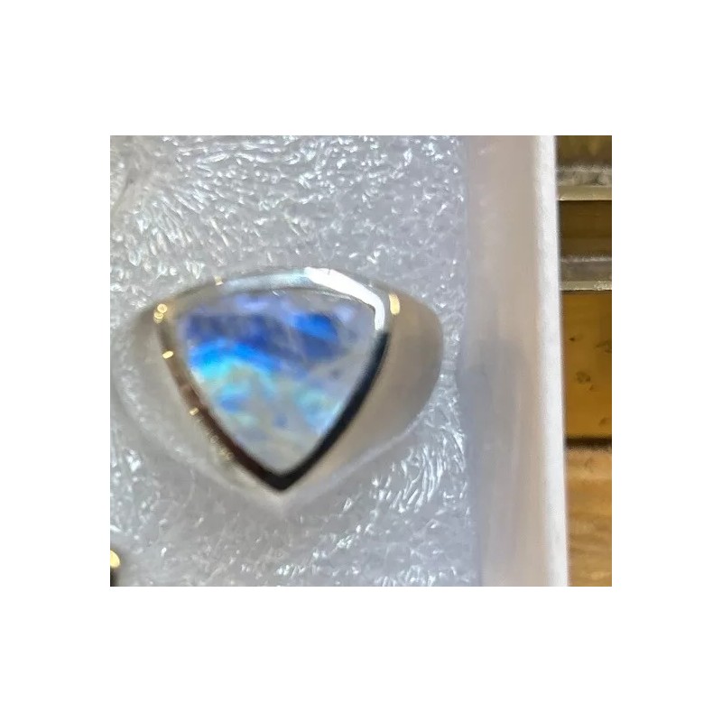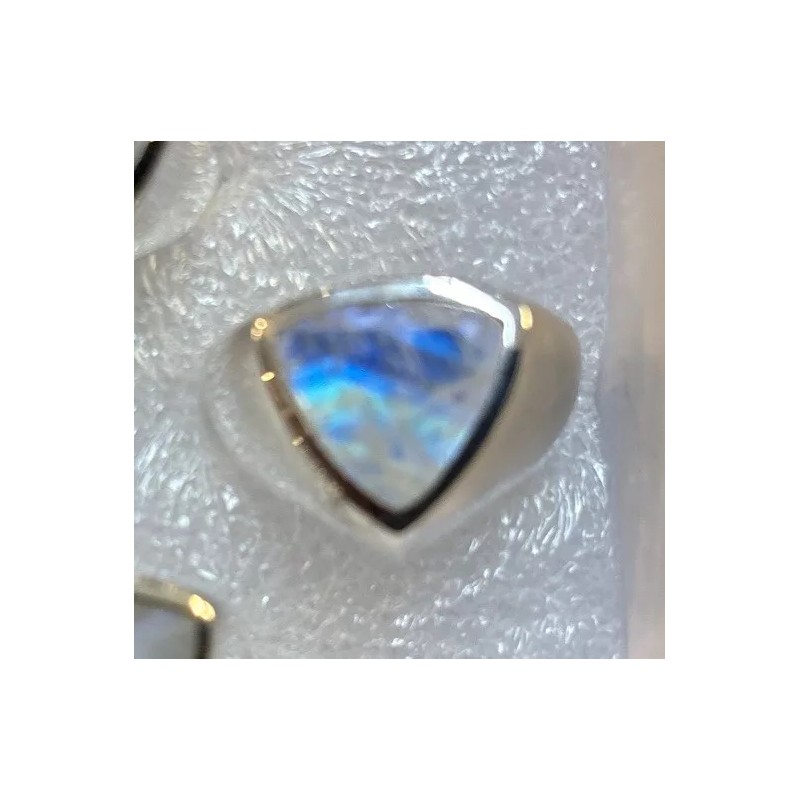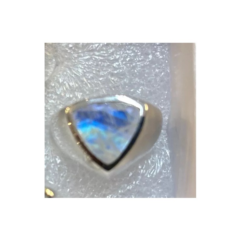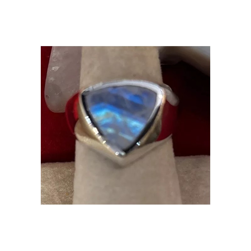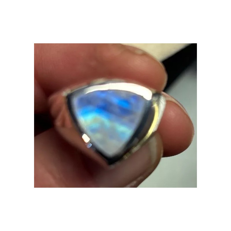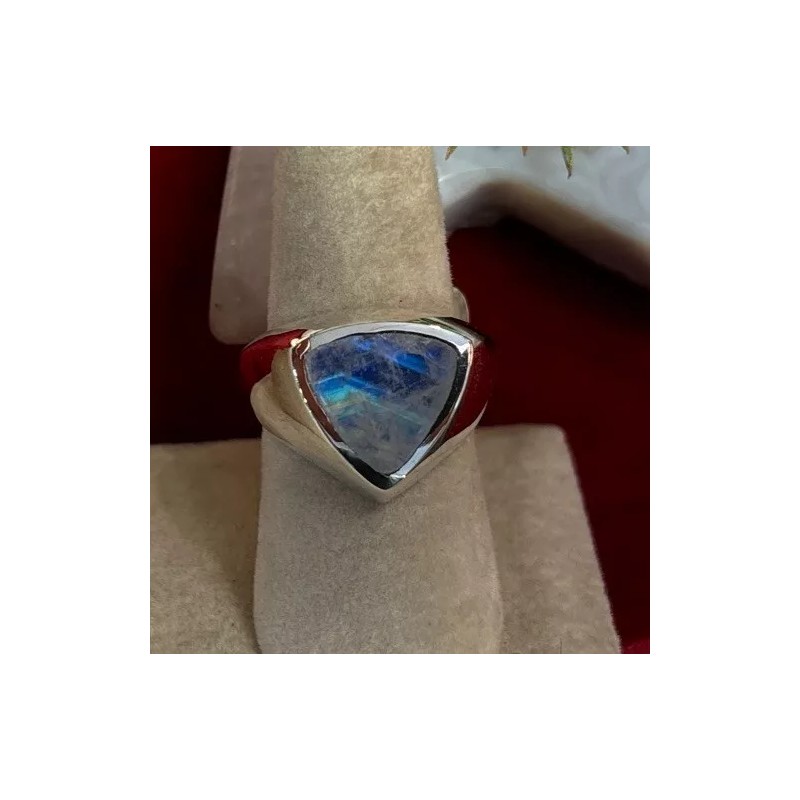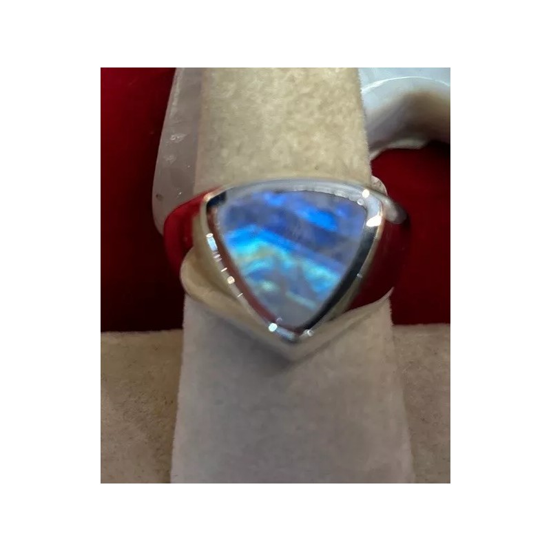Add a touch of elegance to your jewelry collection with this stunning men's sterling silver ring. The ring features a beautiful rainbow moonstone that will catch the eye of anyone who sees it. The blue color of the stone complements the silver band, making it a versatile piece that can be worn with any outfit.