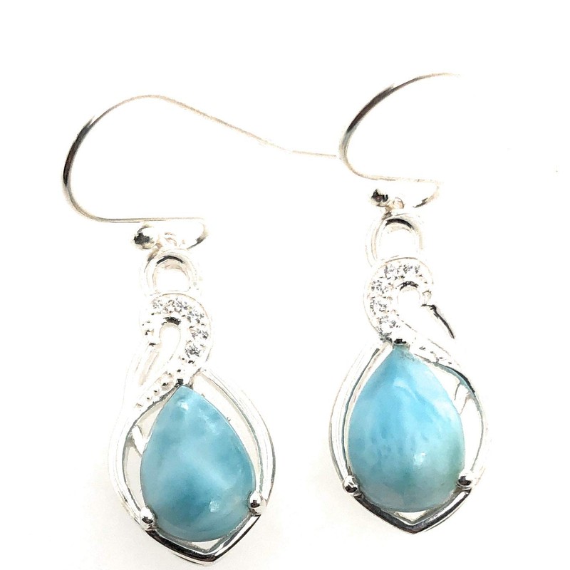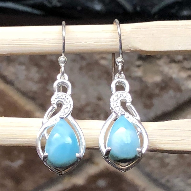 Natural Dominican Larimar 925 Solid Sterling Silver Earrings 30mm