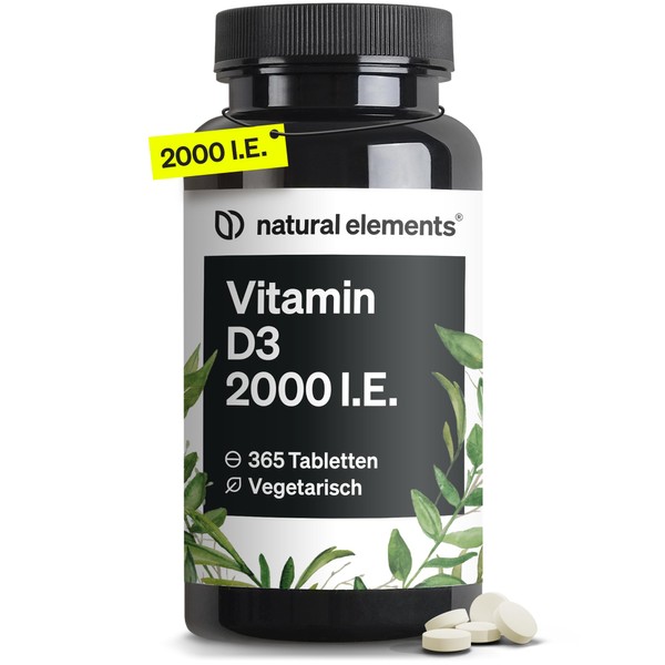 natural elements natural elements Vitamin D3 2000 I.E. – 365 Tabletten – für Knochen und Immunsystem – hochdosiert, ohne unnötige Zusätze – in Deutschland produziert & laborgeprüft