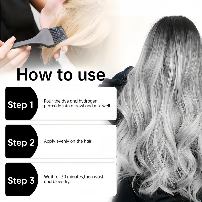 - Achieve Silver Gray Hair Naturally: Our gentle formula creates natural silver tones while keeping your hair healthy and injury-free. Our hair dye cream provides long-lasting color that stays vibrant even with frequent washing
