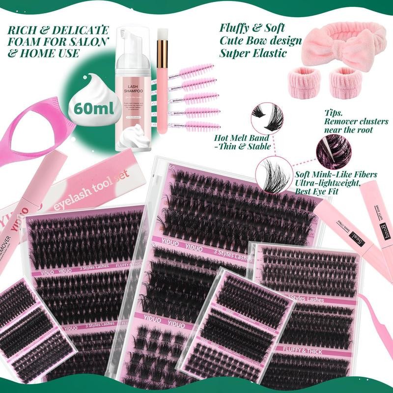 Natural Eyelash Extensions Kit, 1 Set Mixed Length Eyelash Clusters, Self Grafting Curl Eyelashes, Professional Eye Makeup Accessories for Women, Makeup Products, Lash Clusters Kit