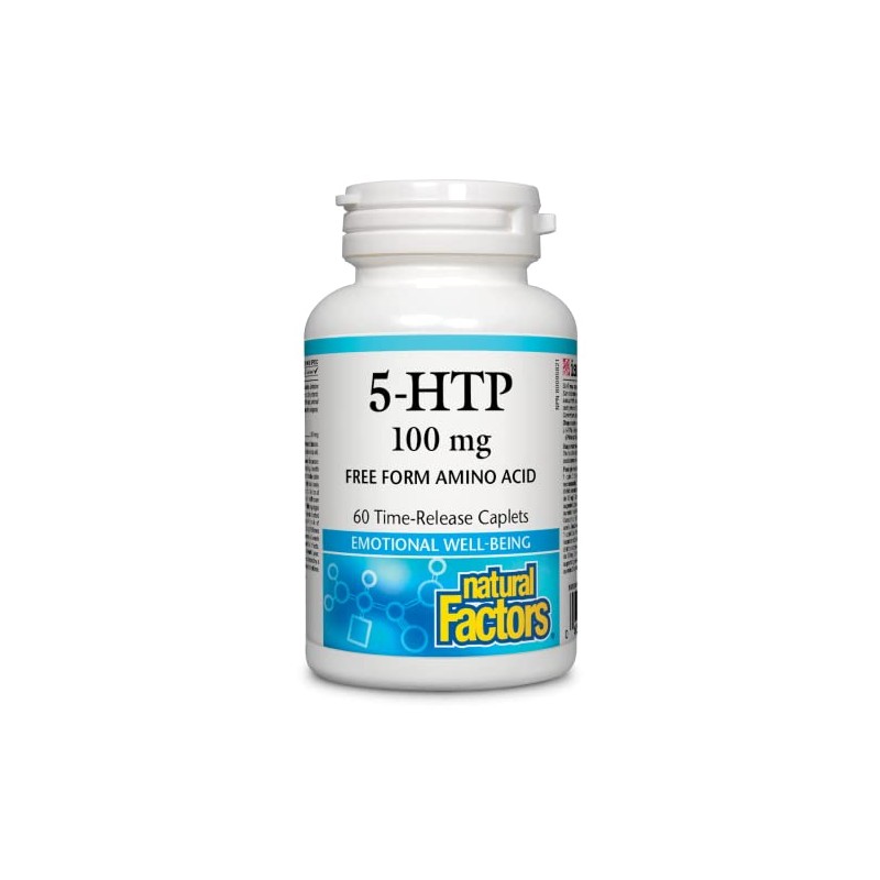 Natural Factors Natural Factors, 5-HTP 100 mg | Promotes a Calm Relaxed Mood, Positive Outlook | Non-GMO, Enhances Production of Serotonin (60 Time Release Caplets)