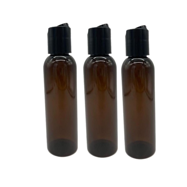 Natural Farms 4 oz Amber Cosmo BPA FREE Bottles - 3 Pack Empty Refillable Containers - Essential Oils - Hair- Aromatherapy | Smooth Black Disc Cap - Made in the USA