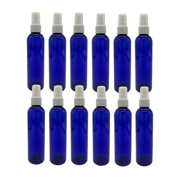 Natural Farms 4 oz Blue Cosmo BPA FREE Bottles - 12 Pack Empty Refillable Containers - Essential Oils - Aromatherapy | White Fine Mist Sprayers - Made in the USA