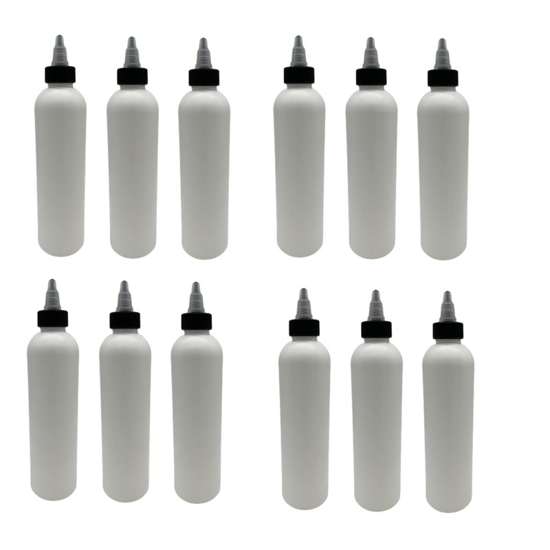 Natural Farms 8 oz White Cosmo Plastic Bottles -12 Pack Empty Bottle Refillable - BPA Free - Essential Oils - Aromatherapy | Black/Natural Twist Top Cap - Made in the USA