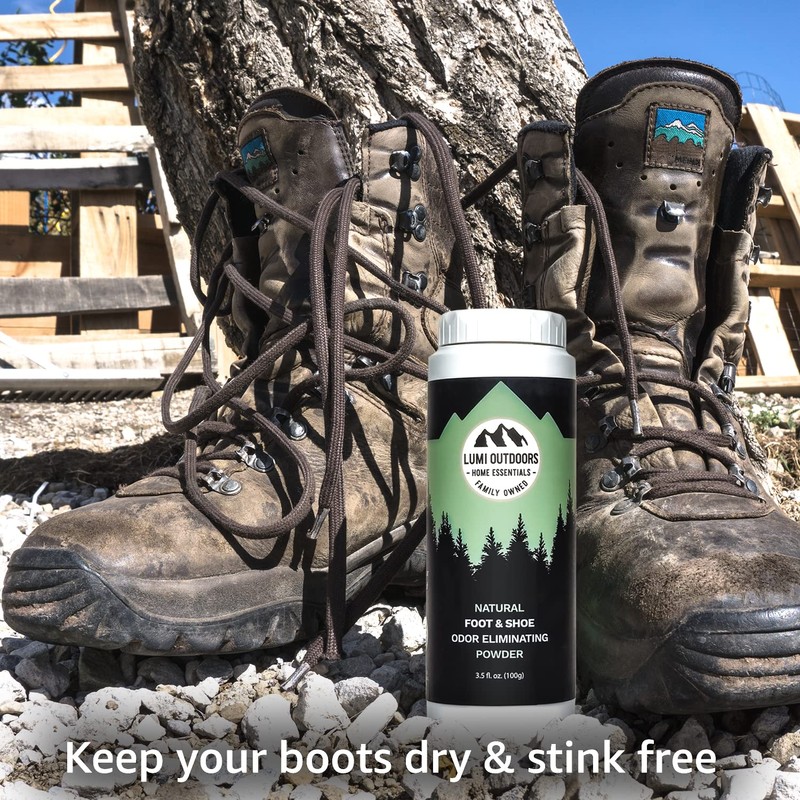 Natural Foot Powder Deodorizer & Shoe Odor Eliminator - Talc Free Foot Deodorant by Lumi Outdoors