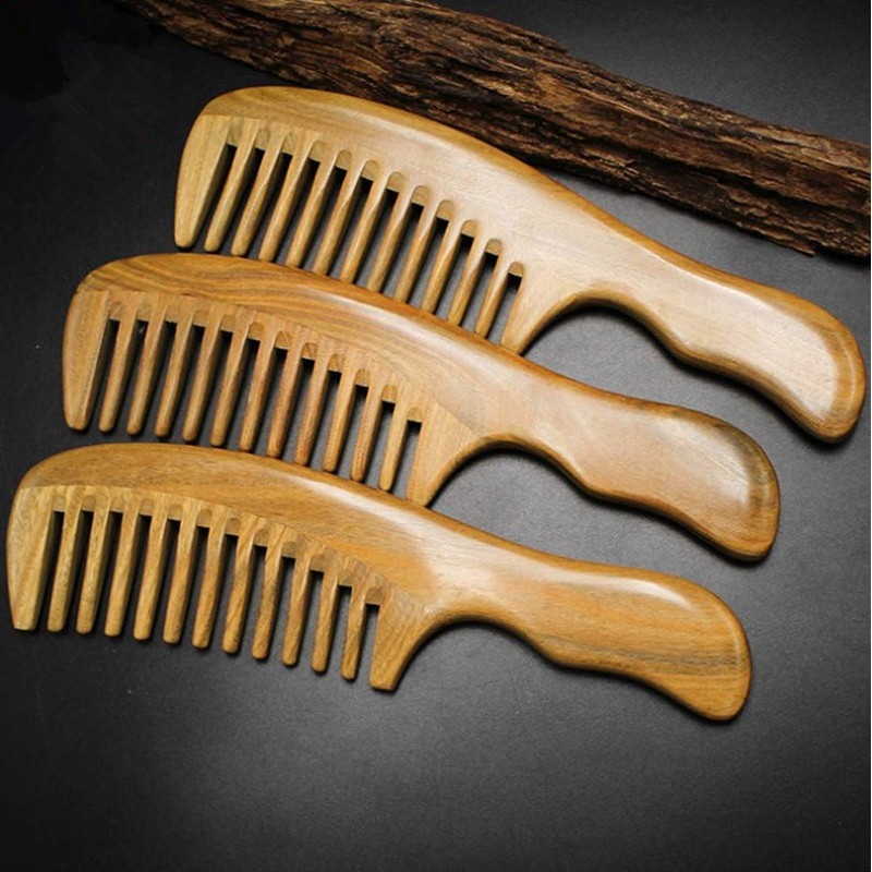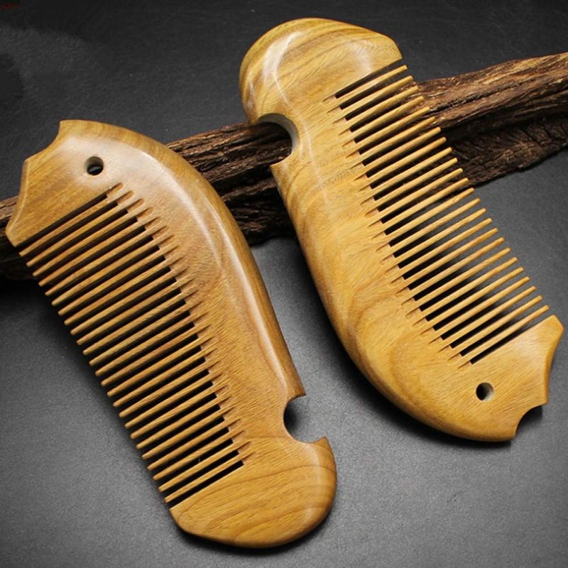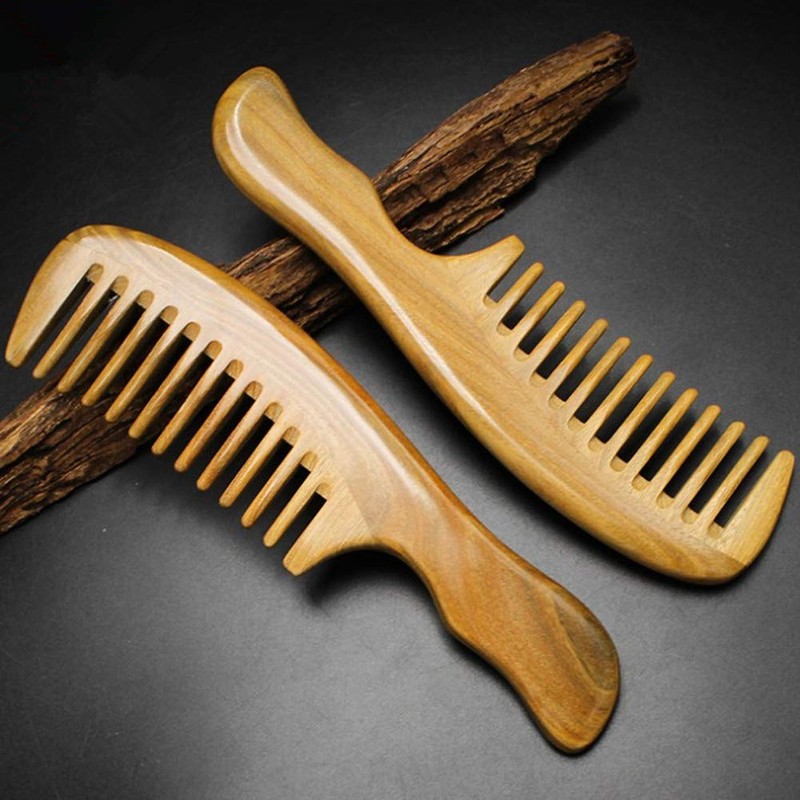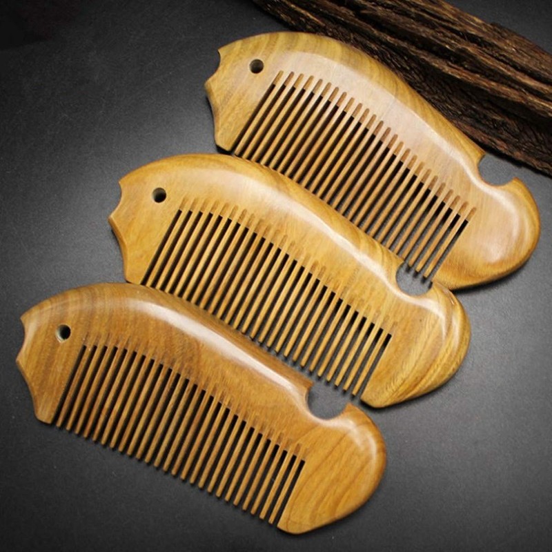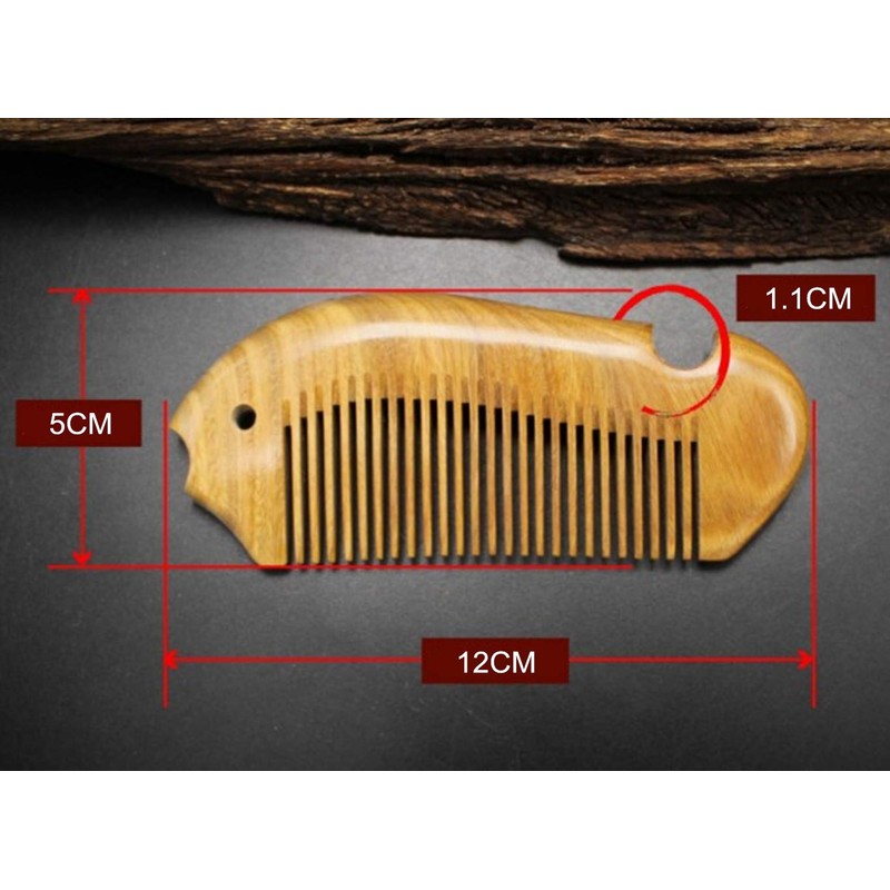 Natural Green Sandalwood Comb Wide Tooth Comb - Aguder Handmade Pocket Hair Comb Beard Comb Moustache Comb with Natural Wood Aromatic Smell