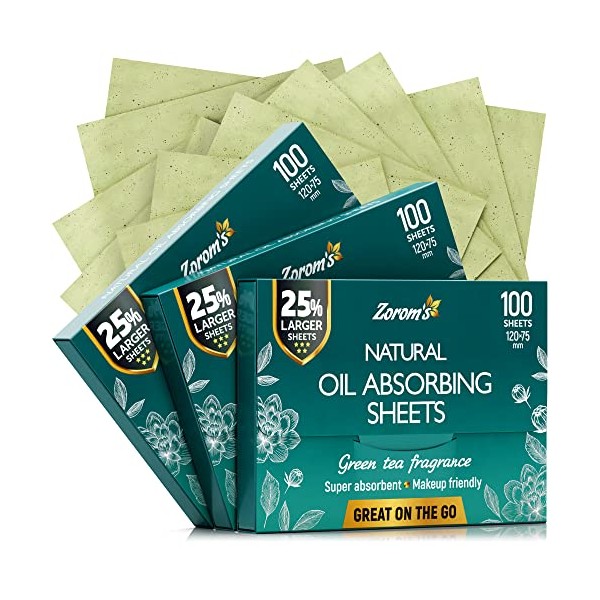 - EXTRA LARGE SHEETS – The best solution for quickly and conveniently removing facial oil. Why? Zorom’s oil pads for face are 25% larger, so you can clean your whole T-zone with only one sheet. Having larger and super-absorbing face blotting sheets saves your money.