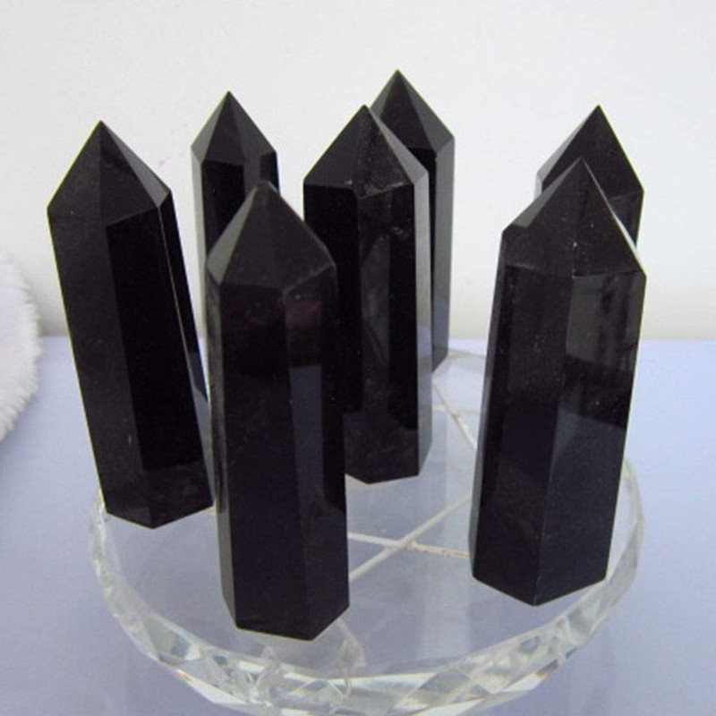 Natural Hexagonal Crystal Quartz Black Obsidian Crystal Healing Stone Hexagonal Stick Pillar