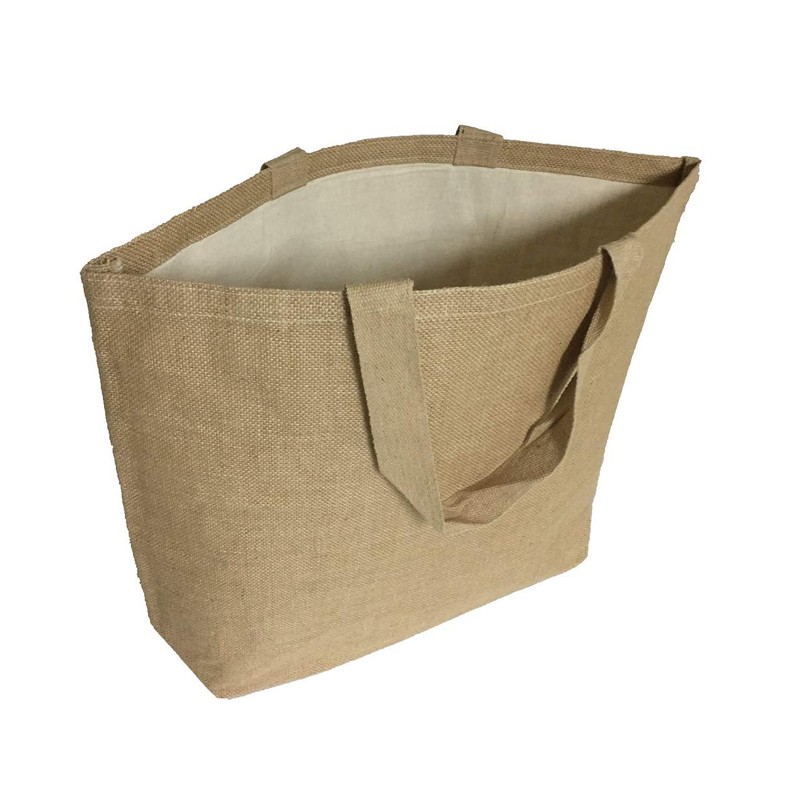 - This reusable, heavy duty and strong daily use jute tote bags are made of 100% Natural Jute Fiber. Eco-friendly jute fiber is entirely compostable and recyclable. Jute bags are long lasting and can be used all over again, revoking the need to use plastic bags. The jute tote bags have natural interior cotton lining. They are sturdy and durable and will absorb dampness in and allow the air flow.