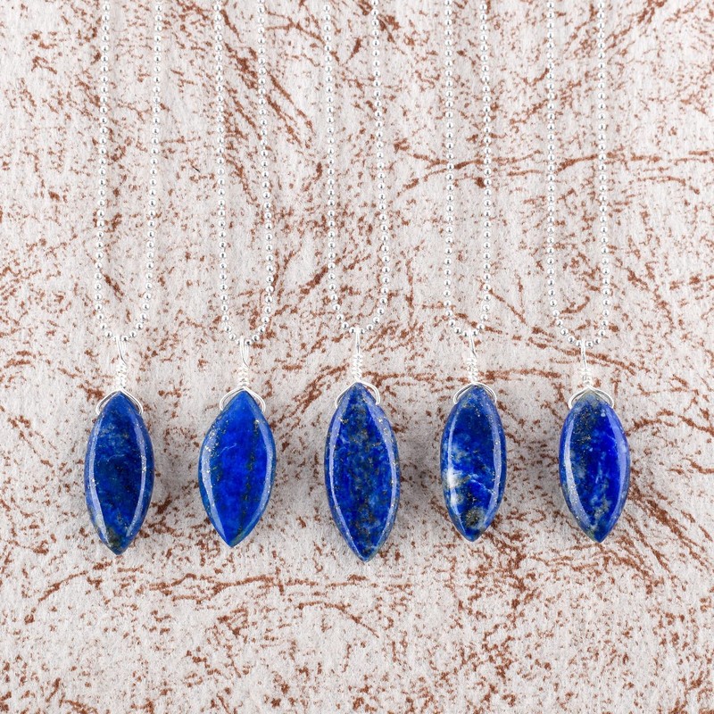 Natural Lapis Lazuli Gemstone Pendant Necklace, Lapis Lazuli Cabochon Stones, Healing Crystals, Silver Plated Chain, Gift for Women, Birthday, Dainty Necklace, Gemstones Jewelry, 18 inch