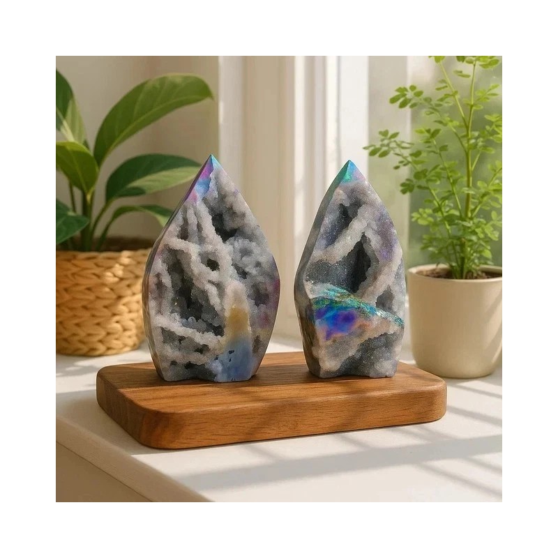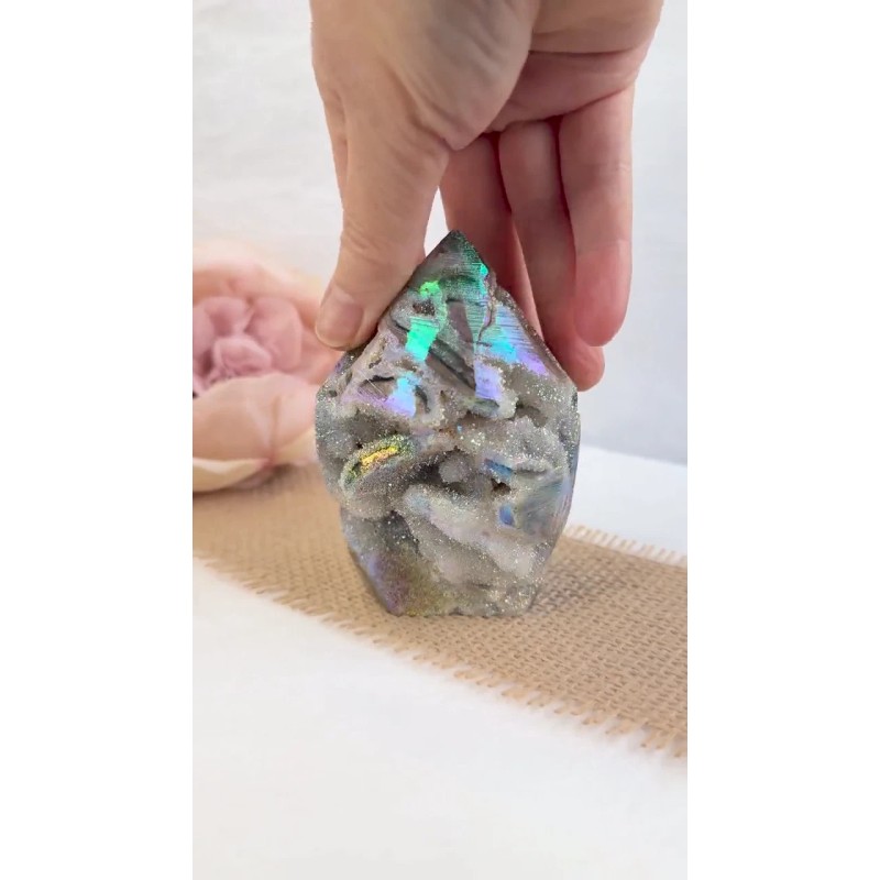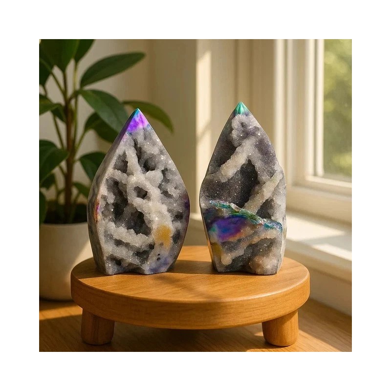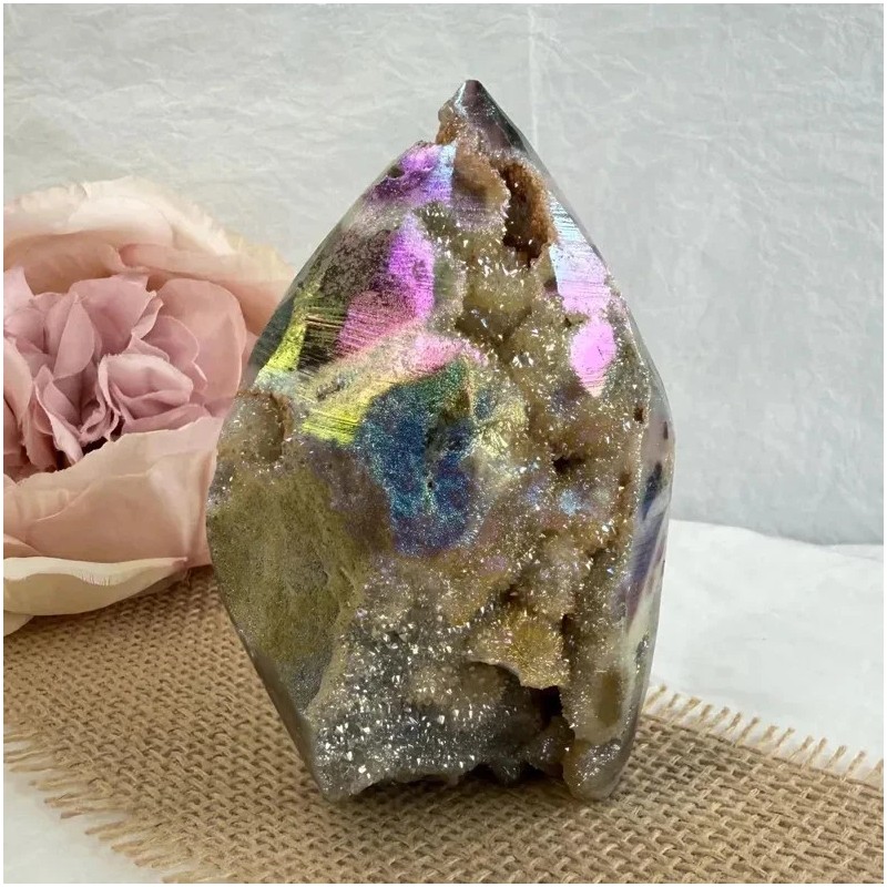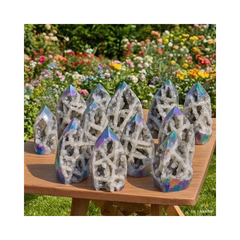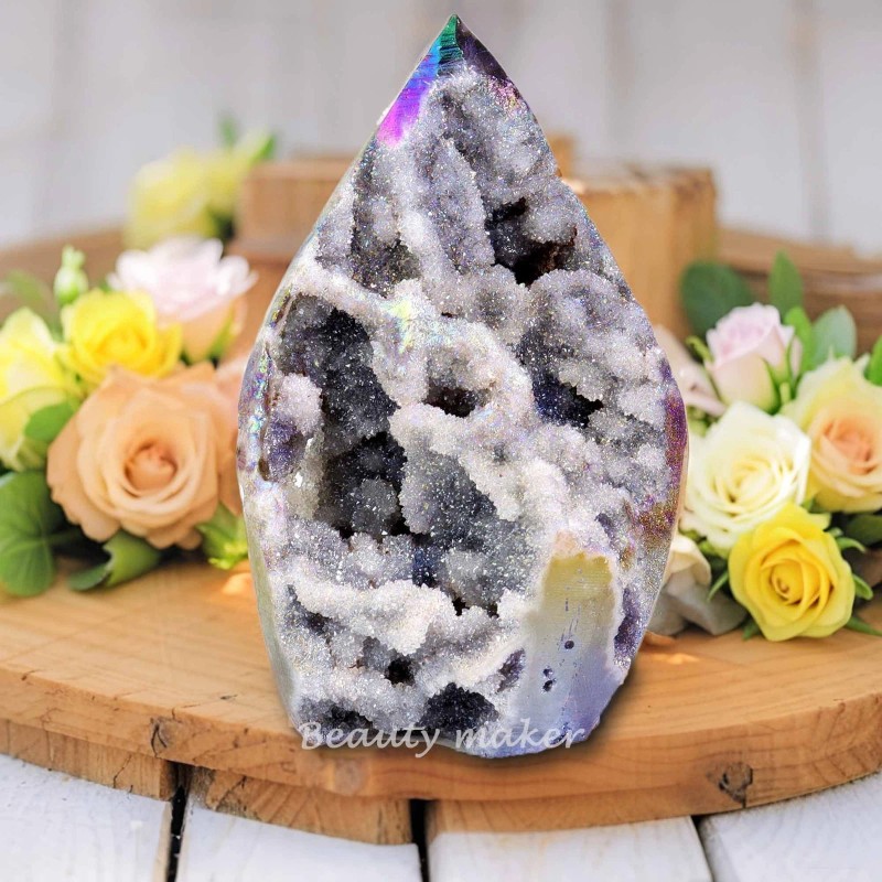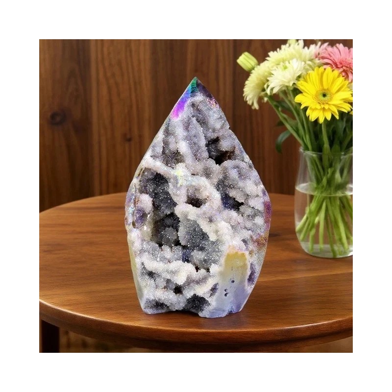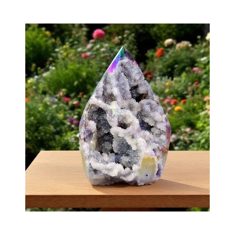 Natural Large Rare Aura Sphalerite Druzy Tower Obelisk Healing Mineral Ornament