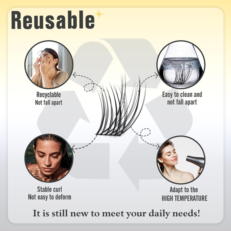 - 【Premium Quality & Comfort】 These Lash Extensions are made with soft, lightweight synthetic fibers designed for comfortable all-day wear. The hypoallergenic material is gentle on sensitive eyes, while the durable construction maintains its shape through multiple uses. Each cluster provides natural-looking volume without irritation, with a fade-resistant black color that stays vibrant.