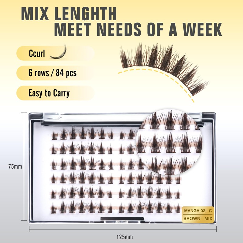 Natural Lash Clusters - 84pcs Wispy Eyelash Clusters, C Curl MIX Length Resuable DIY Lash Extensions,LANKIZ Individual Lashes for Beginners(MANGA02-BROWN)