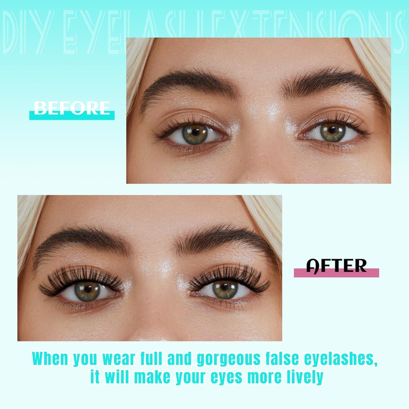 - Diverse DIY lash extension: 9 lengths of eyelash clusters(9-18MM) can be freely combined to create a variety of eyelashes for different occasions. Fully affixed is a natural cat eye effect, affixed in 2-3 clusters is a half eye effect.