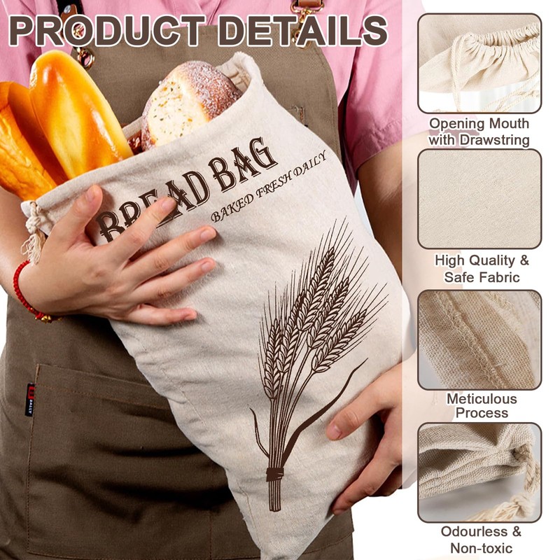 Linen is a natural fiber that retains moisture and is breathable. It can effectively prevent bread from getting moldy, extend its shelf life and maintain a fresh and delicious taste. It allows bread to breathe naturally, making it an ideal environment for storing bread.