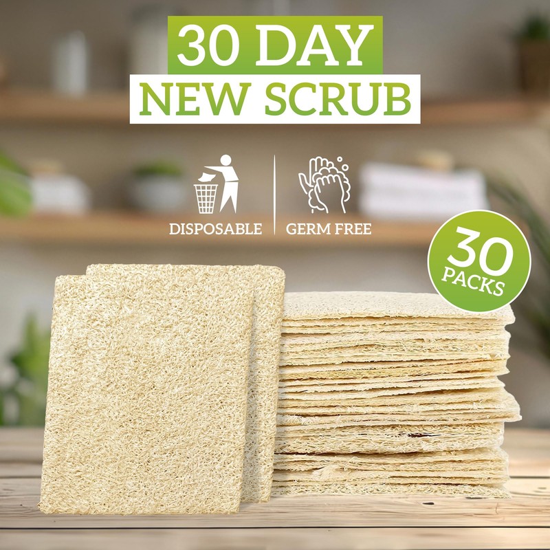 Natural Loofah Dish Sponge (Pack 30) Vegetable Scrubber for Kitchen - 100% Biodegradable Compostable Dishwashing Scouring Pad Zero Waste