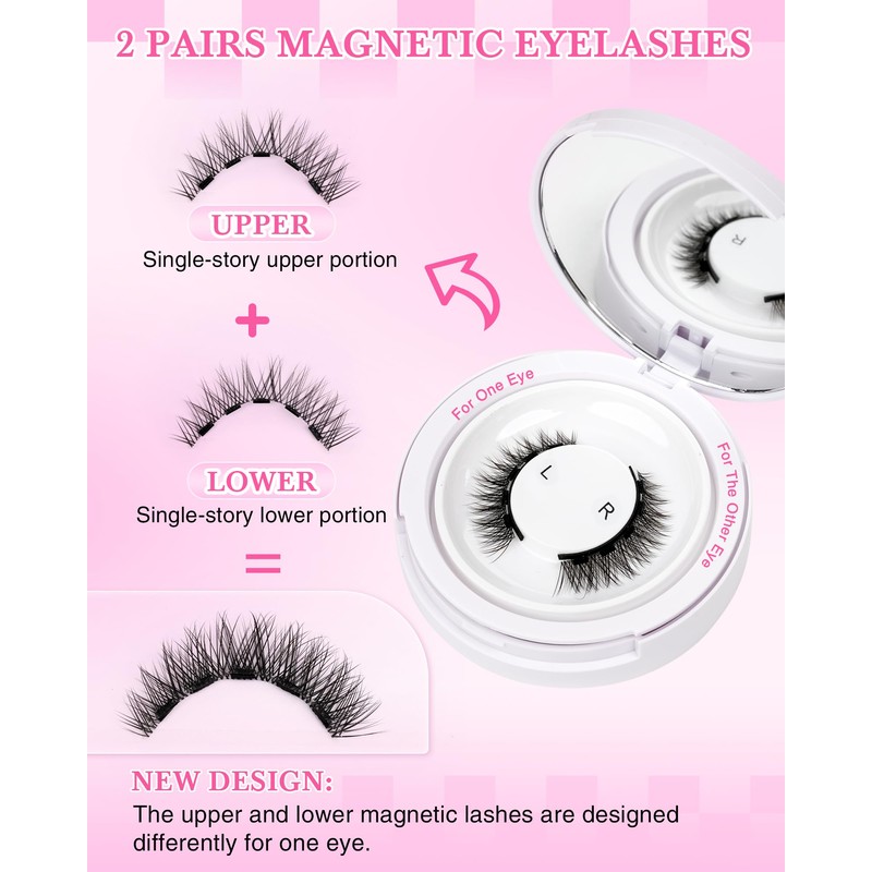 - Magnetic Eyelash Kit: The EMEDA magnetic eyelash kit includes 2 pairs of double-sided magnetic eyelashes, 1 magnetic applicator, 1 small magnetic box with a mirror